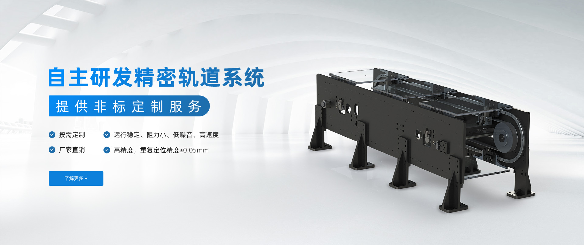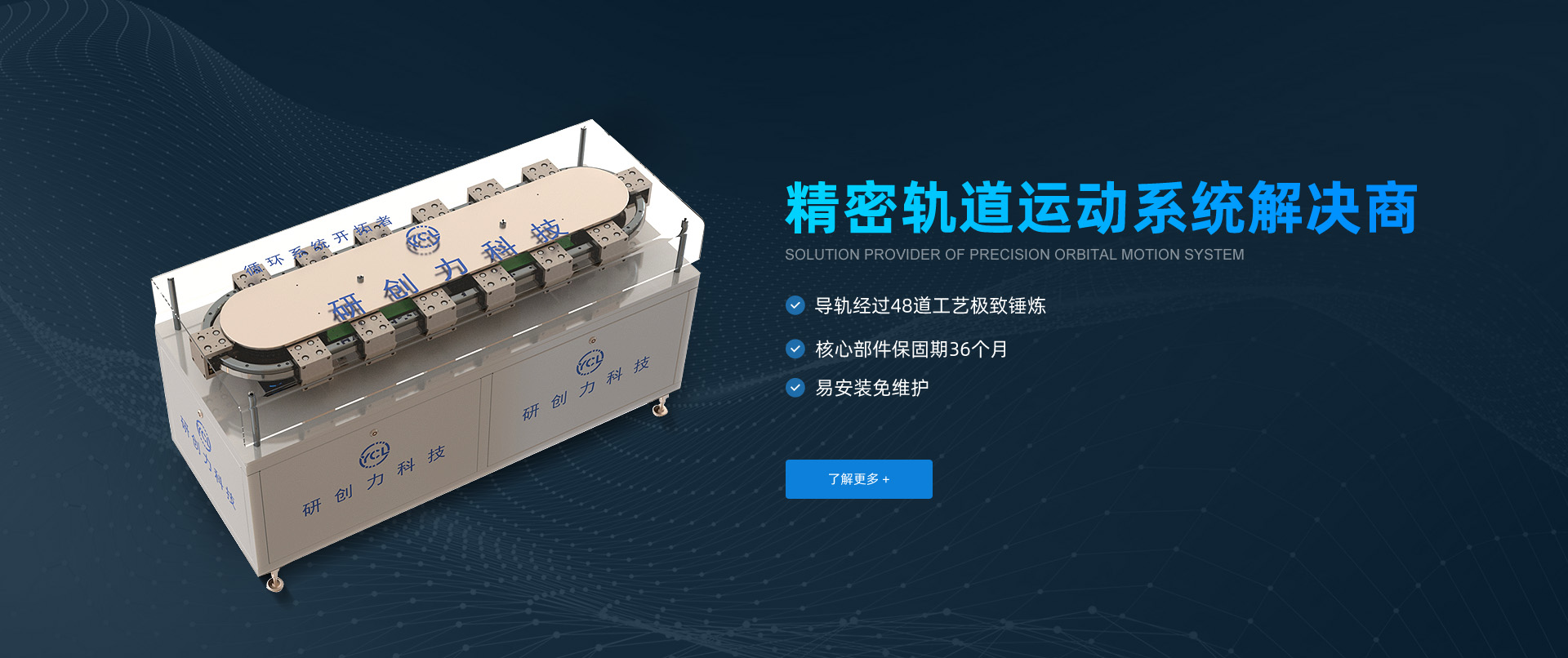 蘇州市研創(chuàng)力科技有限公司是集研發(fā)、生產、銷售:圓弧導軌、直線導軌、環(huán)形導軌生產線為一體的自動化科研制造企業(yè)。我司專注于軌道運動系統的研發(fā)與制造,擁有專業(yè)的生產設備、多年的技術積累以及一支精干的團隊,十年磨一劍!我司專攻軌道研發(fā)、制造,并為運動系統提供配套設計與生產保障;具有先進的工藝設備及完善的測試手段,保證產品制造質量。